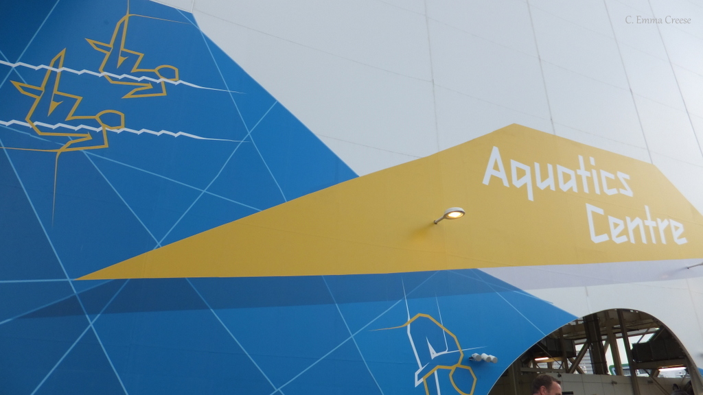 Zahar Hadid's beautifully undulating roof inside the aquatics centre... though it did block the viewing for anyone watching the high-diving 10m board. Fail.